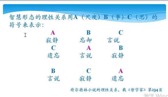 第一行:A B C,代表卢梭思想的理性关系;第二行:C A B 表示席勒;第三行:B C A 则代表荷尔德林。