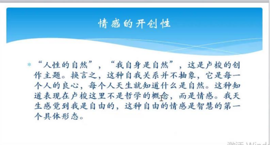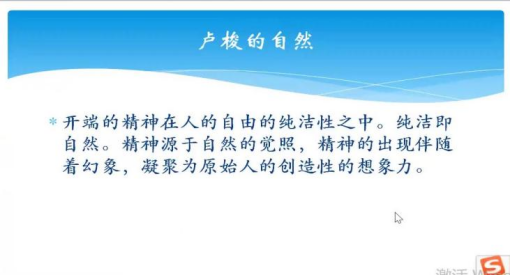 卢梭的思想的关键词是自然,他要回归自然。但卢梭的自然不同于今天常讲的环境意义上的自然,或者资源式的,给人提供生产、生活资料意义上的自然。卢梭的自然完全是一种思想,是自由的艺术、美的艺术思想。这样的一个思想产品叫自然。