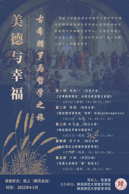 本系列讲座邀请古希腊罗马哲学研究领域有精深造诣的专家学者以该哲学传统中的“美德与幸福”概念为中心,引领大家进入古代哲人在“人应该如何生活”这一问题上所注入的理性思考。