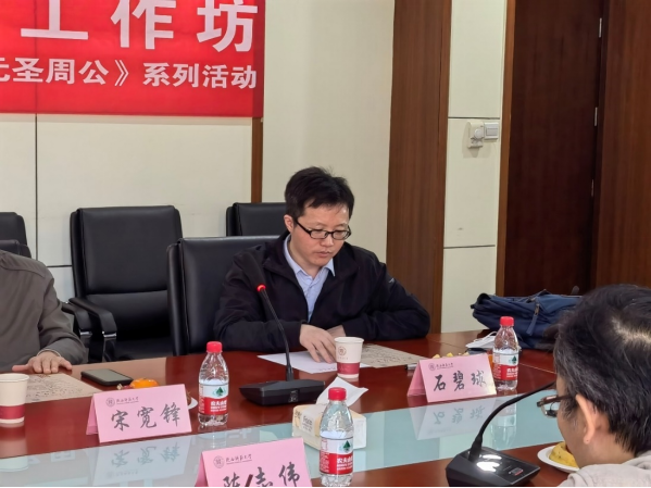 西安电子科技大学人文学院陈志伟教授带来的主题报告题目为《〈论〉〈孟〉中的周公》。陈志伟教授从《论语》、《孟子》文本出发,挖掘其中有关周公的论述,试图一窥周公德貌。陈教授指出,周公是礼法观念的先驱,《论语》中孔子维护礼制的实质就是维护周公之制。在孔子眼中,周公不仅有礼法方面的外在之美,而且其自身也有仁的德性作为内在根据,而这种内外兼具的理想人格形象备受孔子的表彰和向往。在《孟子》中,周公的形象更为饱满。周公不仅是作为孟子性善论的典型代表,同时也是“思兼三王”、开创周制的圣人。