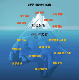 采取“形式教育+非形式教育”的教育方式,在书院内开辟思想星空大讲堂、哲学与通识教育工作坊、学术沙龙、经典读书会、闻道·茶叙、电影沙龙、游学研修、耕读研习、社会实践、文化节、戏剧节等形式多样的第二课堂,力图通过更多的非形式教育,真正起到以能力培养为核心,健全学生的人格与批判性思维的养成,助力学生成长。
