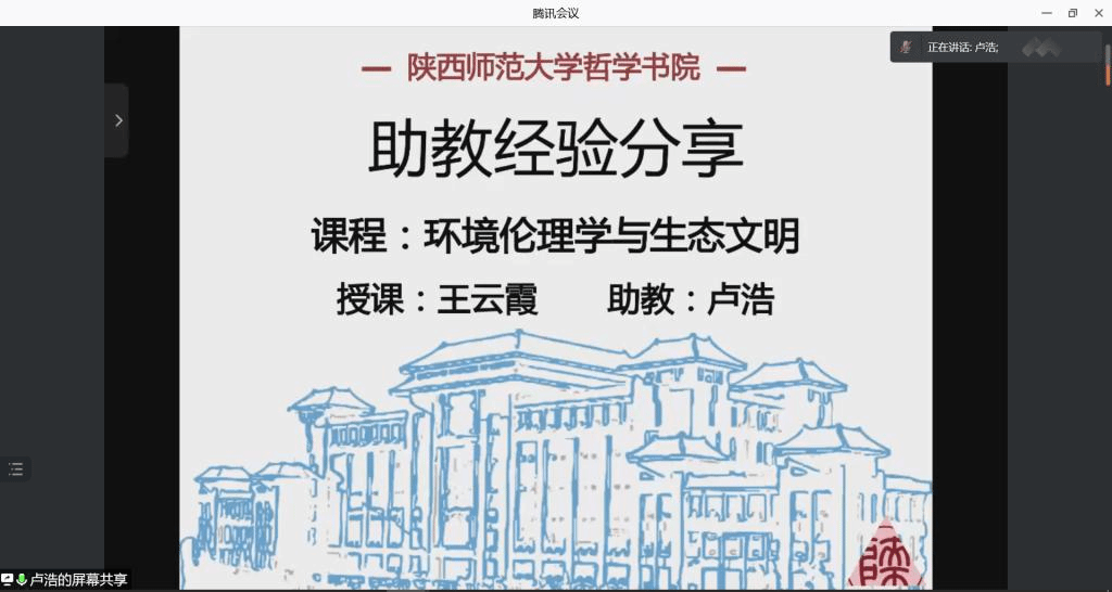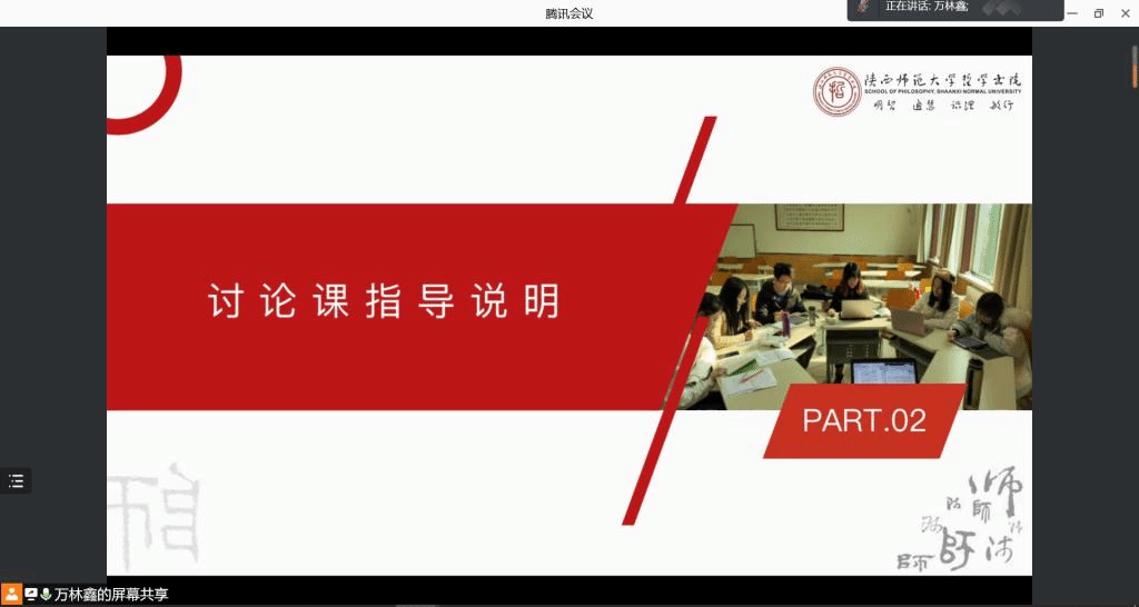 会议第二项议程由三名优秀的往届助教学长分享他们的工作经验。敖安娜、卢浩和高明昊分别分享他们在过去担任助教学长的一些经验和心得,给大家带来的许多宝贵的意见和建议。如向同学分发调查问卷了解班级同学的学习情况和感想,在课程交流群里与同学们真诚互动,以及及时分享课程相关电子学习资源并组织同学相互交流学习等等。此外,他们还分享了一些在工作中遇到的问题和困难。