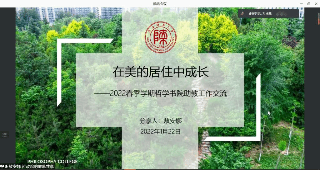 会议初始,尹兆坤老师介绍了本次会议的议程分别为万林鑫老师介绍书院基本情况及助教学长工作细则,往届优秀助教学长经验分享,关于助教学长工作交流和答疑,以及石碧球老师总结发言四个部分尹老师对本次会议召开的背景和作用做简要的介绍尹老师首先向大家介绍了书院的特色和目的,即通过教学活动、沙龙活动和读书会等形式,旨在提高学生学习的积极性和自主性,同时,为具有组织能力、敏捷思维并且沟通能力强的学生提供平台,充分发挥大家自身的优势。其次,助教学长是书院有一个重要的主体性力量,是学生和教师之间相互联系的重要桥梁,所以助教学长是书院不可或缺的一部分。最后,表达了对新一届助教学长圆满完成工作任务的期盼。