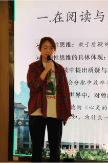 随后,书院学子范思韵、张玺、潘芷茵作为学生代表分别发言。她们向大家分享了阅读与写作的方法,对自己在书院的学习和生活进行了经验介绍,表达了对书院和老师们的感谢,展望了自己对书院的期望和与书院共同进步的积极心态。