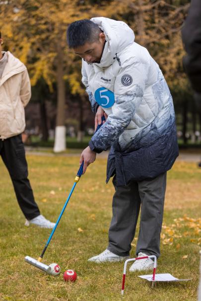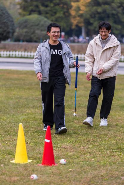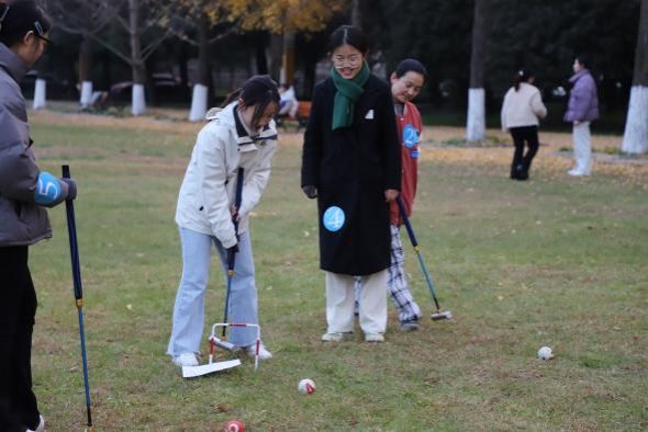 于11月25日下午在第五届文化节期间举办了“挥杆对垒,交个‘盘’友”主题竞技活动。全校近百名本科生踊跃报名组队,迎接这场别开生面的比赛。在这次活动中,学生们纷纷体验了门球和飞盘活动,他们尽情挥杆,争分夺秒,不仅锻炼了身体,更增进了彼此之间的友谊。整个活动持续了三小时,现场一片欢声笑语,洋溢着青春活力。