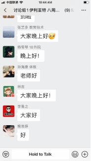 作为本学期的第一次讨论课,为了让同学们更加从容地在线分享及问题回顾,采用微信群逐条语音形式进行。讨论课共分三个环节,从个人汇报、自由讨论到一句话小结,同学们准时上线,积极参与,热闹有序。