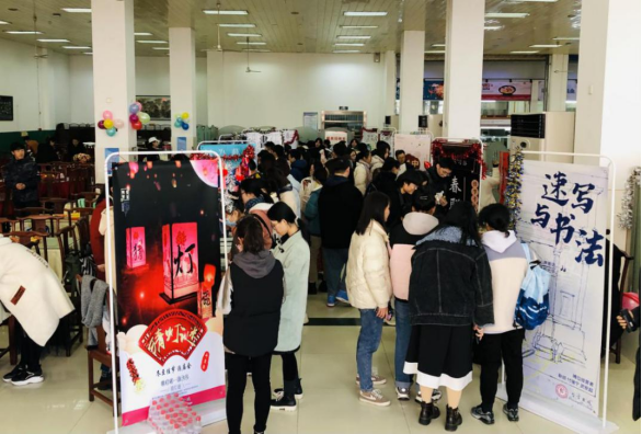 庙会上书院学子自行设计制作各式各样的特色文创产品、扑朔迷离的塔罗占卜、扣人心弦的猜灯谜、个性酷炫的“街头”速写、独具匠心的剪纸、饮水哲思的行为艺术、精致的手写书签、传递爱与梦的春联小铺、让人想破脑壳的知识竞答等等,还有其他多种多样的小玩意。