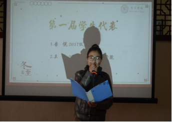专业导师宋宽锋、曹树明、石碧球、王辉、王晶、许潇、江求流、刘佳宝,书院办公室工作人员高洋、李忆兰,本学期课程助教及书院的三届学生代表,共计百余名师生欢聚一堂,在喜乐祥和的气氛中迎接冬至并展望书院新的一年。