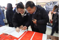 首届冬至节暨第二届书院文化节闭幕式正式开幕,三位书法家现场泼墨挥毫,为书院学子赠字,将庙会活动推至高潮。