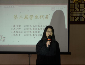 “冬至大过年”,在接下来的“圆”桌“饺”流中,师生共同品味美味的汤圆、饺子,共话饺子与哲学。品味美食之际,进入学子心语环节。从遇见书院之初的欣喜,而后在书院的课程学习和各类活动的参与体验,到对哲学学习与本专业学习的思考等,本届助教代表和前两届学生代表依次分享了不同视角下的书院印象,引发了大家的共鸣与深思。
