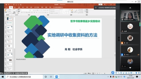最后,石碧球做总结,他希望全体同学深刻领会此次寒假社会实践的主题,着眼家乡,回到家乡,寻找家乡,从生活世界出发,在“家”与“乡”日益分离的今天带着对问题的反思和回答与家乡重新建立起亲缘关系,以在外学子的社会责任感、融入感回馈家乡,为自己生活成长的一方土地贡献智慧力量。