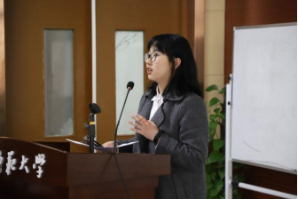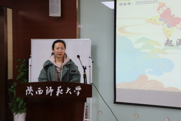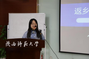 邓巧悦同学代表“返乡人和进城者的寻觅——现代性视角下的城乡对立与个体自我认同”项目团队进行汇报,她对本项目的选题、前期准备、实践的具体开展及成果做了细致介绍。