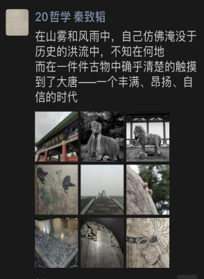 广泛开展第二课堂的具体实践。学术报告、视频观看与实地考索相结合,不仅加深了书院学子对唐代帝陵文化的学习和研究兴趣,也在使得大家在特定的时空环境中,追溯历史足迹,触摸关中艺术,增强文化自觉,坚定文化自信,做新时代文化传承人。