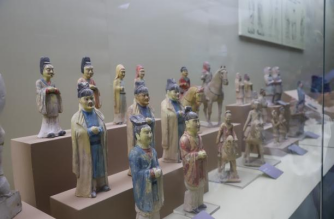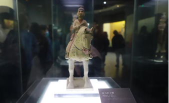 跟随馆内工作人员的讲解,师生共同参观了昭陵文物精华展、昭陵唐墓壁画展、昭陵碑林陈列室三个主题展厅。昭陵文物精华展陈列室集绘画与雕塑于一身,高贵典雅、栩栩如生的瓷胎彩绘釉陶俑成对、成组的映入眼帘,加之展厅以大纲式独立柜和叙事式通柜相结合的形式跨越式地从初唐讲述到盛唐,大家不禁为之惊叹。