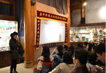 关中皮影是一种非常古老的传统戏剧艺术形式之一。馆内各式各样轮廓清晰、精致缜密、形神兼备的皮影人物、道具同样吸引着每个人。“双手舞动百万兵,一口诉说千古事”,大家在观看《卖货郎》中进一步感受皮影独特的魅力。“顶天立地的渔鼓,降龙伏虎的简板”,白纱屏幕后,老艺术家一边操纵戏曲人物,一边用陕西碗碗腔或弦板腔唱述故事,配以打击乐器和弦乐,有浓厚的秦人气息。各类人物活灵活现,台下掌声连连。