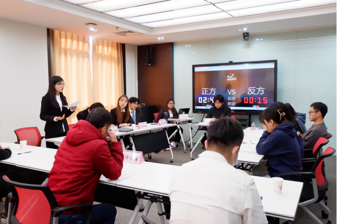 在你来我往的交锋中,双方辩手针锋相对。张海满老师点评道:“这是一场精彩绝伦的比赛,辩题本身的独特性使得辩论更加困难,而反方能够跳出讨论框架,将辩论变得更具针对性,极大的削弱了正方的力量,使正方的辩论陷入僵局。”