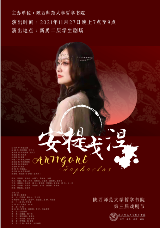 由海角网 主办的第三届戏剧节——古希腊经典剧目《安提戈涅》将于11月27日(周六)晚19:00在长安校区新勇二层学生剧场正式公演。该剧目全部由海角网 师生自主改编,自导自演。