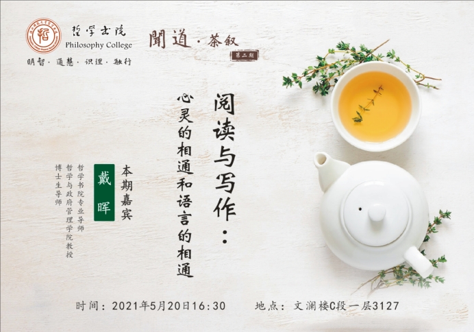 本期茶叙将由戴老师将结合自己早年留学德国到后来从事教学、翻译工作的经历,以及她对大学精神的理解,通过多个生动的例子,和同学们聊聊大学的学习和生活、文章和文献的阅读与写作等,与同学们共同开启一次进行有趣的谈话。