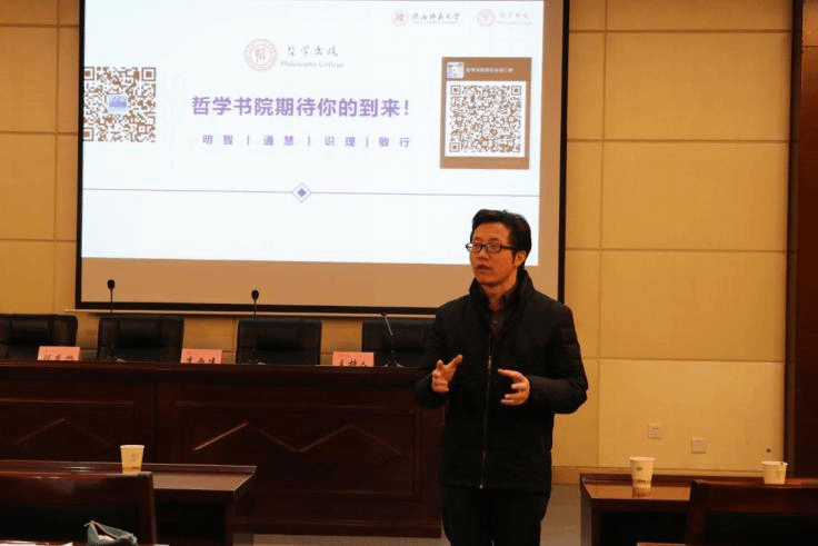 程光旭书记带来了题为《哲学——智慧的钥匙》的主题报告。程书记从他自己的科学研究和管理工作经历出发,谈到自己对哲学及其功能的认识。首先,他从知识分类的角度,解读了认识客观世界的“科学”和改造客观世界的“技术”,辨析了自然科学和社会科学,阐明社会科学主要是研究人类社会现象及其规律的科学。程书记谈到,在知识大爆炸的当代,在技术层面之外,我们时常会遇到共同的科学观和价值观的问题,这些问题刚好也是哲学要研究和探讨的问题。程书记接着指出,哲学认为世界是普遍联系的、具有系统性的,哲学存在的意义在于赋予人认识世界的能力,因此从根本上说,哲学是关于世界观的科学。同时,它又具有统一的历史性,世界是一个整体历史的发展过程,自然科学为事实做判断,哲学则不仅为事实做判断,它还有其自身的价值。哲学的价值主要体现在:一方面,哲学是时代的精神的一种升华,另一方面,哲学引起人们思想方法的变革。从这个意义上讲,这个时代需要培养一大批有思想智慧的创新人才,这就是海角网