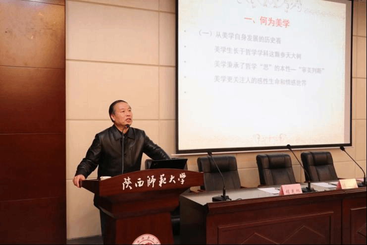 在程书记的精彩讲述之后,李西建教授为在座的学生带来了《何为美学与美学何为》的主题报告。李教授以其丰富的学术涵养向各个专业的学子介绍美学这个与哲学密切相关的特色学科。李教授首先谈到自己学术方面的转向,因为偏好理论,擅长思维训练,故而在文学中选择了美学作为自己的研究领域。那么美学与哲学二者之间是什么关系呢?李教授从两个层面阐述:其一,美学生长于哲学这棵参天大树,美学和哲学的渊源是很深厚的。第二,美学更关注人的感性世界和感性生命、情感事件,他指出人类早期的思维并非是哲学思维,而是诗性思维,也就是一种美学的思维。随后,李教授谈到美学学科独立之后,能够支撑美学学科的基础学科主要是艺术学和心理学。那么“何谓美学”?李教授从三个方面总结道:第一,美学实际上是一门人文学科,它是哲学和艺术两大学科的融合,它秉承的是哲学的思,而在艺术学的方面,它更多吸收的是艺术的诗性思维;第二,美学秉承了哲学的品质,它是以人生价值的意义为中心,对不同的人文学科向艺术学、伦理学、心理学、教育学等学科理论的一个内在的吸收;第三,美学是研究人类审美关系,审美活动的人文学科。而关于“美学何为”这个问题,李西建教授以哲学化的概括总结为:美学是人与世界的一个审美性的建构,他期冀着大家能够回到思想创造的基点,以哲学思的深邃和力量引领人生。最后李西建教授借用朱光潜先生的一个忠告——慢慢走,欣赏啊,向着人生的艺术化努力——作为本次报告的点题之结语。