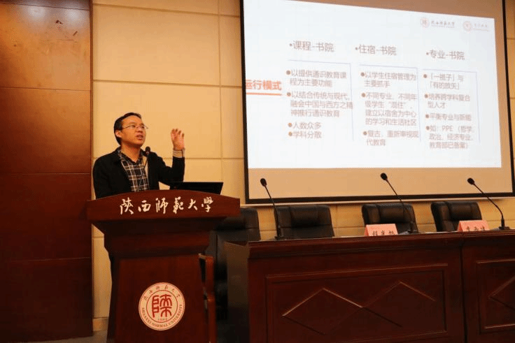 通识中心主任尹兆坤从具体的角度向学生们介绍书院,尹老师从为什么要办书院、书院基本情况,书院的理念和特色,书院所取得的成效、本届招生政策等各个方面进行全方位的介绍,便于学生们对书院形成一个整体的感观。