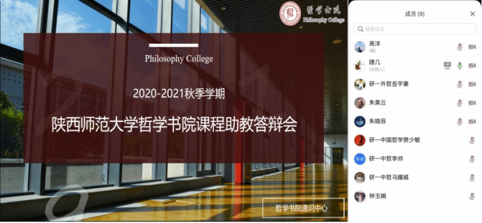 于2021年1月6日下午在长安校区文澜楼C段一层办公室举行本学期的助教答辩暨助教工作交流研讨会。本次会议由通识中心主任尹兆坤主持,莅临现场指导的有海角网