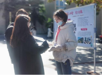 长安校区阳光苑、溢香楼、首阳书房外的招生咨询有序开展