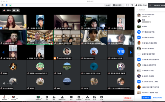 活动伊始,尹兆坤老师表示本次云茶叙旨在对书院学子进行选课指导,帮助大家全面细致地了解所选课程,并搭建一个积极的、活跃的、阳光的平台,加深大家对书院的了解。至此,一场师生之间关于选课指导与选课经验的分享就在这样愉快的氛围中展开了。