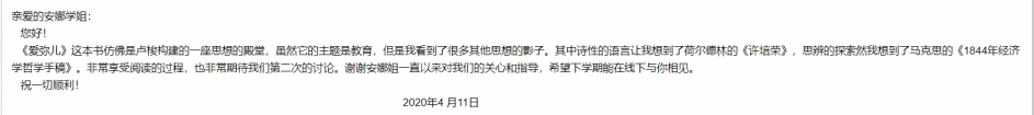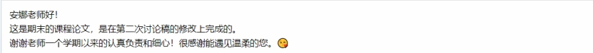 最后,全程利用邮件与同学们进行交流是更为正式和有效的沟通方式,也便于后期查询及反馈。