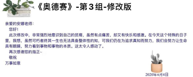 收到同学们的讨论稿修订版后,于讨论课前两到三日分享到所属讨论组并组内指定点评人。供大家提前熟悉组员讨论内容的同时,也在一定程度上保证讨论课上同学们的关注度和参与度。