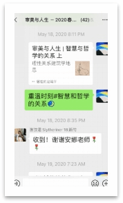 日常教学方面,本学期全程采用线上授课形式,《审美与人生》共授课十七周(不含讨论课周),利用超星学习平台和腾讯会议分别进行十四次录播课程和三次直播课。作为课程助教,教辅工作主要集中在课前筹备及课后学习社群运营两方面。